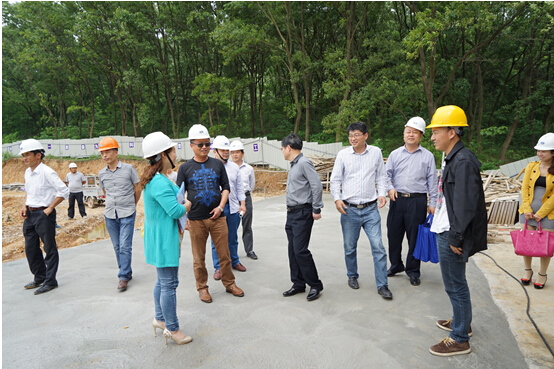 图为安徽建工技师学院及协会领导在操作现场观摩